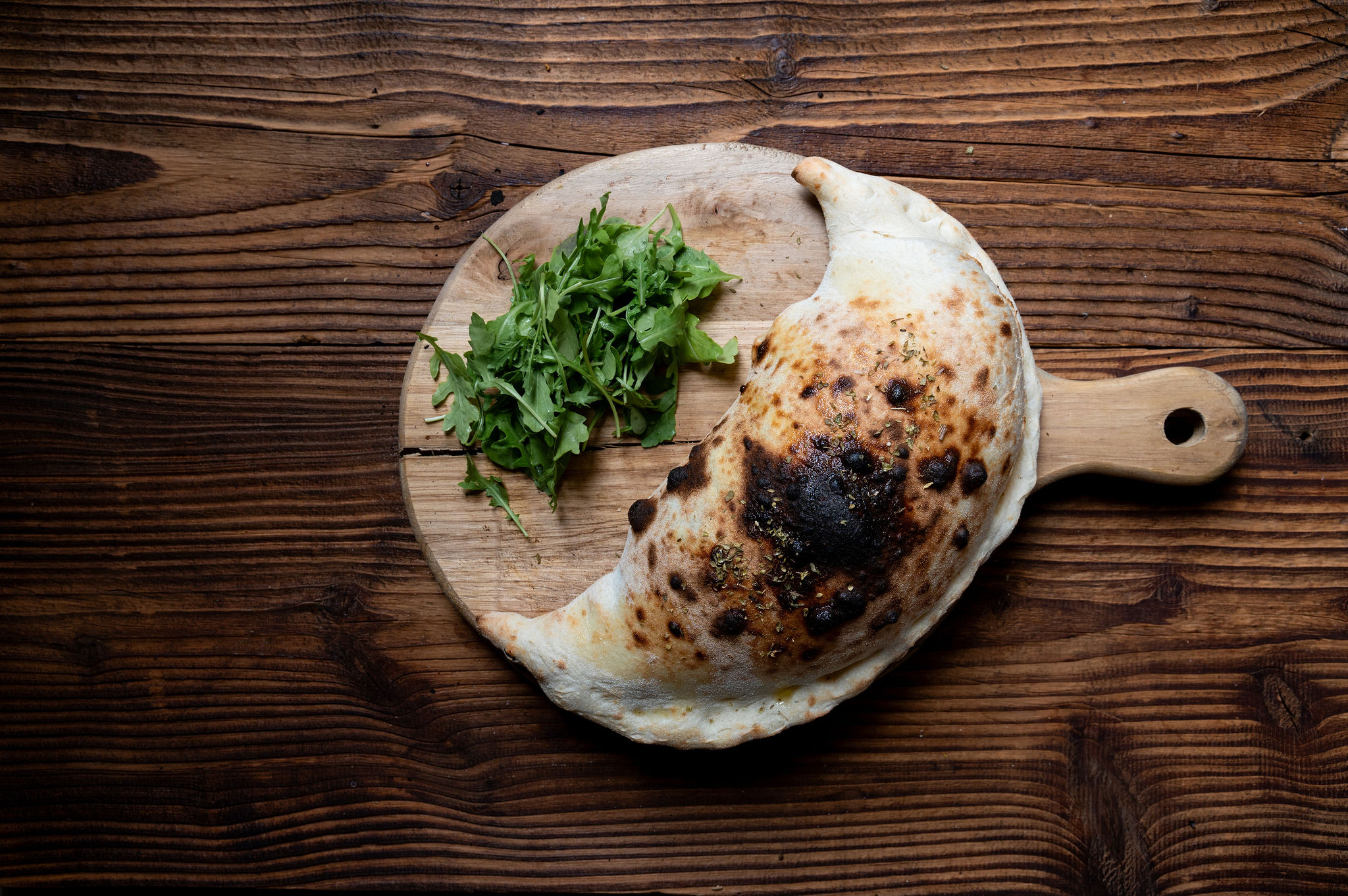 (Pizza en Chausson) : tomates, mozzarella, champignons, jambon blanc italien, œuf, filet de crème