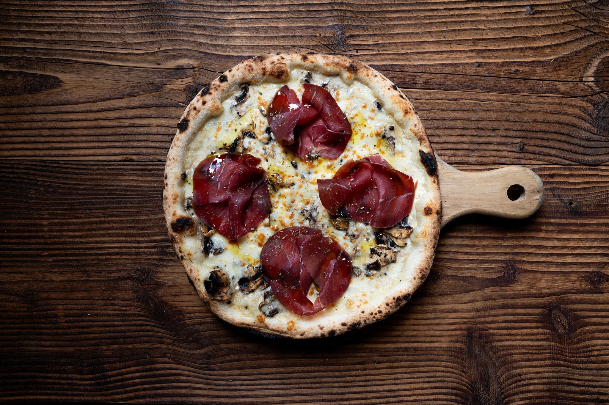 Base crème de truffe, mozzarella, champignons, bresaola italienne, huile de truffe italienne.